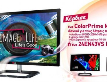 Η LG Hellas διοργανώνει διαγωνισμό και σας δίνει τη δυνατότητα να κερδίσετε 1 οθόνη LG ColorPrime 27EA83 και 1 οθόνη LG 24EN43VS.