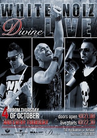 Οι WhiteNoiz, το δυναμικό Pop-Rock συγκρότημα, επιστρέφουν με ένα μεγάλο Live την Πέμπτη 4 Οκτωβρίου 2012, στις 22:30, στο Divine στην Κηφισιά, με σκοπό να ταρακουνήσουν μουσικά τις Πέμπτες σας με τη δυνατή σκηνική τους παρουσία, τα εκρηκτικά τους κομμάτια και να διαδώσουν το θόρυβο τους και στα βόρεια προάστια. Το BullMp.com Χορηγός Επικοινωνίας στo Live των WhiteNoiz στο Divine, δίνει τη δυνατότητα να ΚΕΡΔΙΣΕΤΕ ΠΡΟΣΚΛΗΣΕΙΣ ΓΙΑ ΤΟ LIVE ΤΟΥΣ.