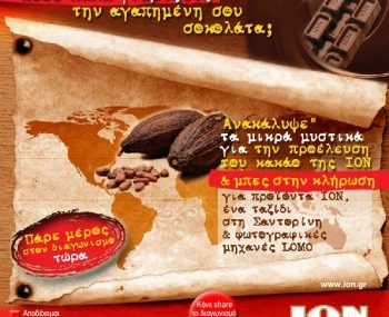 Ανακάλυψε τα μικρά μυστικά για την προέλευση του κακάο της ΙΟΝ και μπες στην κλήρωση για προϊόντα ΙΟΝ, ένα ταξίδι στη Σαντορίνη και φωτογραφικές μηχανές LOMO.