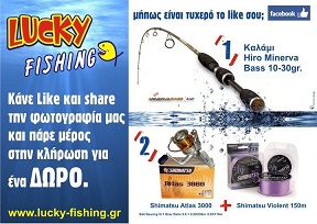 Το Lucky- Fishing διοργανώνει διαγωνισμό και σας δίνει τη δυνατότητα να κερδίσετε 1 Καλάμι ψαρέματος Hiro Minerva bass 10-30gr. και 1 Mηχανισμό Shimatsu atlas 3000+ Πετονιά Shimatsu Violent 150m, συνολικής αξίας 135,00€.