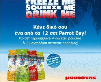 Ο Mασούτης διοργανώνει διαγωνισμό και σας δίνει τη δυνατότητα να κερδίσετε 12 σετ δώρου PARROT BAY (το οποίο περιλαμβάνει 4 cocktail pouches & 2 μανταλάκια πετσέτας παραλίας).
