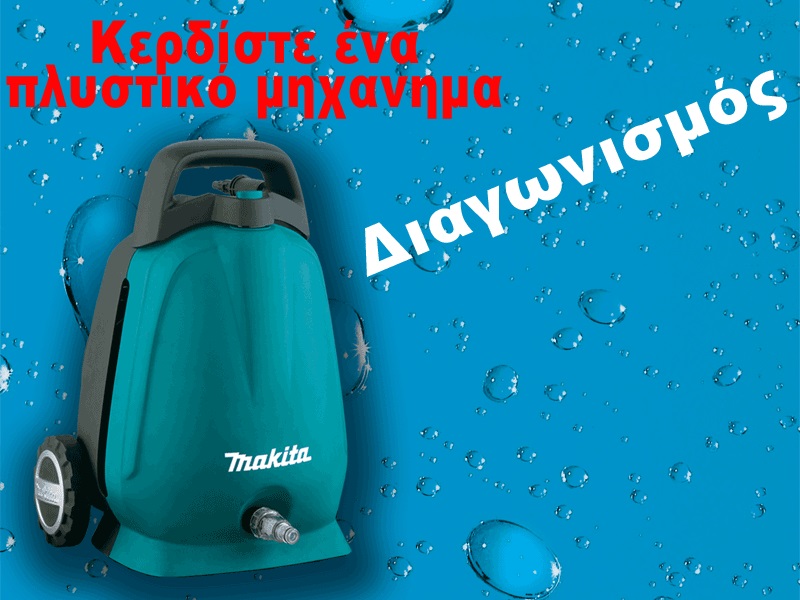 Η σελίδα Makita Hellas διοργανώνει διαγωνισμό και σας δίνει τη δυνατότητα να κερδίσετε ένα πλυστικό μηχάνημα υψηλής πίεσης ΗW102 για να πλύνετε και να καθαρίσετε το αυτοκίνητό σας, την αυλή και το γκαράζ σας μέσα σε λίγα λεπτά χωρίς κόπο!