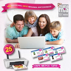Το ManaMia επιστρέφει με το νέο διαγωνισμό «25 Νέα κουπόνια, 25 έγχρωμοι εκτυπωτές». Ανακαλύψτε τα 25 νέα κουπόνια του ManaMia που προσφέρουν έκπτωση έως 30% στα προϊόντα Nestle και κερδίστε έναν από τους 25 έγχρωμους εκτυπωτές HP.