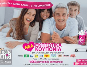 To ManaMia.gr ανανεώνεται συνέχεια, με σκοπό μέσα από το πλούσιο περιεχόμενό του να καλύψει πολλά ενδιαφέροντα θέματα. 30 νέα κουπόνια σας περιμένουν με εκπτώσεις έως και 30% σε μια μεγάλη γκάμα αγαπημένων προϊόντων Nestle, όπως Nescafe, Λουμίδης, Kορπή, Maggi, Nesquik, KitKat, Nirvana, Neslac, Junior και πολλά άλλα για όλη την οικογένεια, αλλά και PURINA για τους τετράποδους φίλους μας.