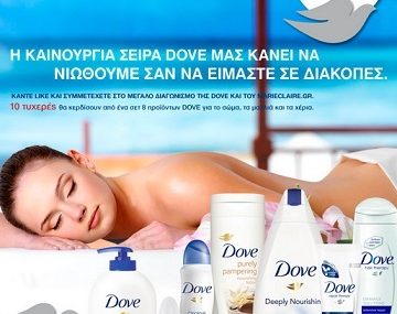 Το Marie Claire Greece διοργανώνει διαγωνισμό και δίνει τη δυνατότητα σε 10 τυχερές να κερδίσουν μία ολοκληρωμένη σειρά Dove Original, με 8 προϊόντα Dove για το σώμα, τα μαλλιά και τα χέρια και να βιώσουν την απόλυτη εμπειρία θρέψης και ενυδάτωσης που μόνο το Dove προσφέρει.