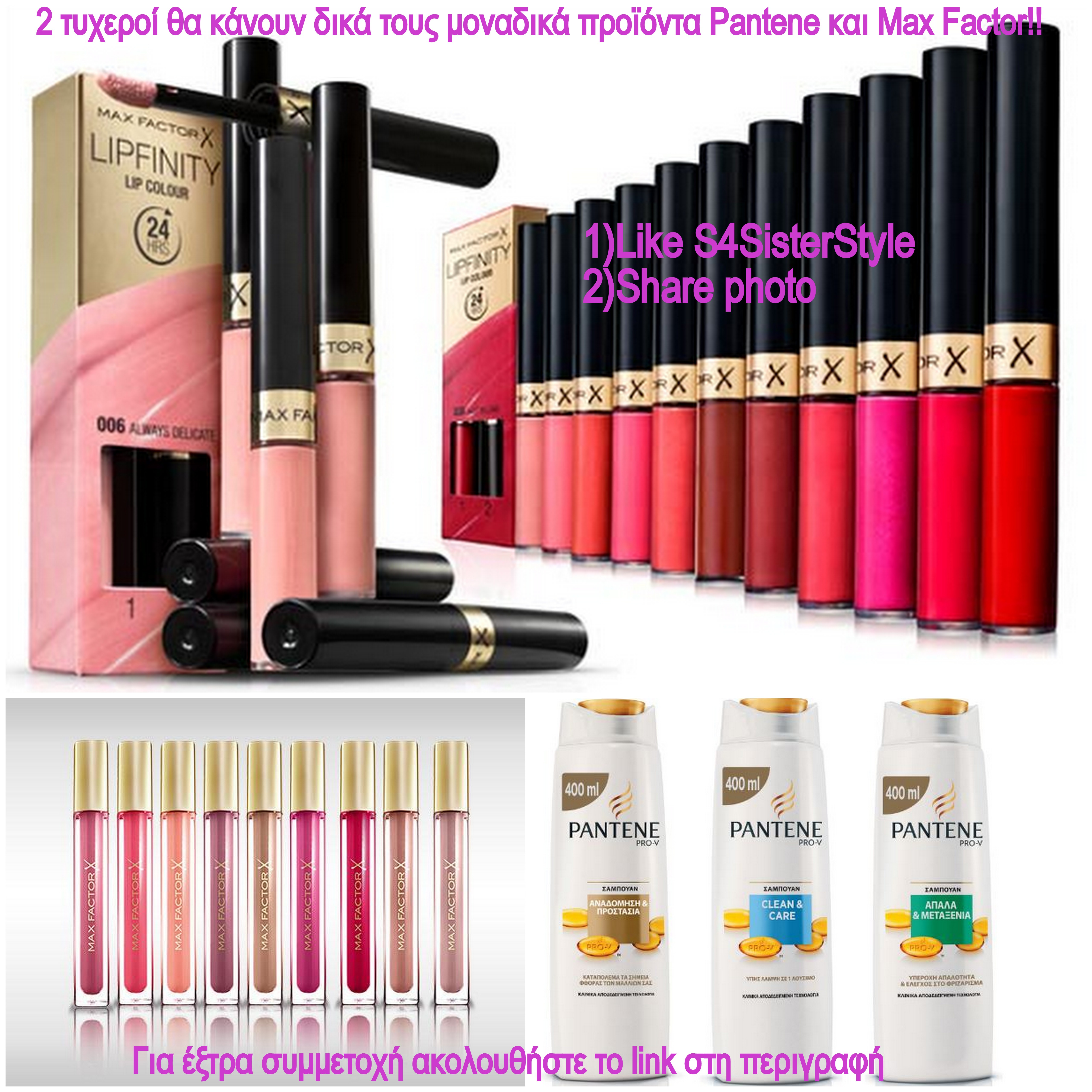 Το s4sisterstyle.com διοργανώνει διαγωνισμό και δίνει τη δυνατότητα σε σε 2 τυχερούς να κερδίσουν υπέροχα δώρα Pantene και Max Factor για τις Χριστουγεννιάτικες περιποιήσεις σας!