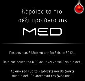 Η MED διοργανώνει διαγωνισμό και σας δίνει τη δυνατότητα να κερδίσετε 12 σετ από τα ρούχα/εσώρουχα που έχετε ψηφίσει ως τα αγαπημένα σας. Το γυναικείο δώρο είναι ένα κορμάκι (body), ενώ το ανδρικό είναι ένα σετ εσωρούχων που αποτελείται από εσώρουχο και t shirt (ακόμα κι αν αυτό δεν απεικονίζεται).