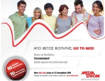 Ο διαγωνισμός απευθύνεται σε πρωτοετείς φοιτητές και δίνει δώρα δέκα κρεβατοκάμαρες αξίας 10.000€ από τη Media Strom