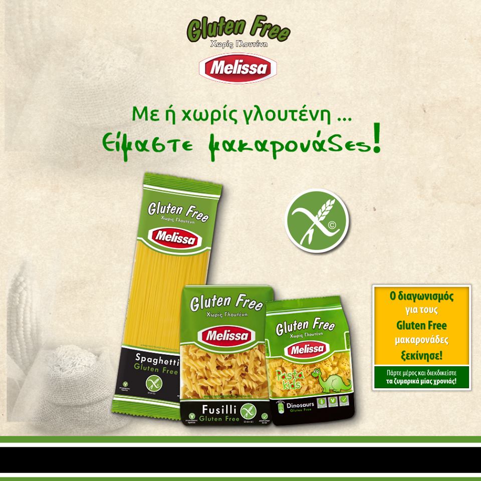 H Melissa διοργανώνει διαγωνισμό και δίνει τη δυνατότητα σε 7 τυχερούς να κερδίσουν ζυμαρικά Melissa Gluten Free για 1 ολόκληρο χρόνο!