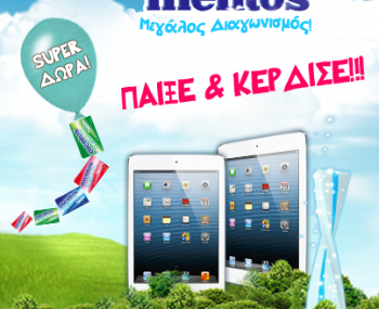 Η σελίδα Mentos Greece διοργανώνει διαγωνισμό και σας δίνει τη δυνατότητα να κερδίσετε 2 Apple iPad mini 16GB, για τους 2 νικητές της κλήρωσης στο τέλος του διαγωνισμού και 100 κουτιά με συσκευασίες Mentos Pure Active, για τους 100 νικητές μέσω της διαδικασίας στιγμιαίας επιλογής (Instant Winners).