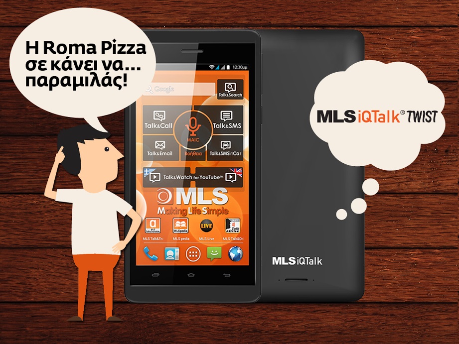 Η Roma Pizza διοργανώνει διαγωνισμό και σας δίνει τη δυνατότητα να κερδίσετε το νέο κινητό της MLS iQTalk TWIST Black, με οθόνη 4,5’’, κάμερα 8MP, βάρους 129gr!