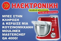 Η Ηλεκτρονική διοργανώνει διαγωνισμό και σας δίνει τη δυνατότητα να κερδίσετε μία κουζινομηχανή MOULINEX MASTERCHEF QA 400G.