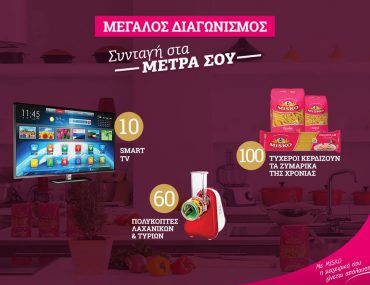 H MISKO διοργανώνει διαγωνισμό και σας δίνει τη δυνατότητα να κερδίσετε 10 τηλεοράσεις Sony, 60 Πολυκόπτες λαχανικών και τυριών Moulinex και τα ζυμαρικά της Χρονιάς για 100 ακόμη τυχερούς!