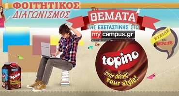 Το mycampus.gr και το topino γίνονται σύμμαχοι σε αυτή τη δύσκολη περίοδο της εξεταστικής! Σου προσφέρει τα πιο hot links ώστε να βρεις θέματα παλαιότερων εξεταστικών αλλά επιβραβεύει και εσένα που θα μας στείλεις τα δικά σου θέματα (για τους υπόλοιπους φοιτητές), εξασφαλίζοντάς σου ΤΙΣ ΚΑΛΟΚΑΙΡΙΝΕΣ ΣΟΥ ΔΙΑΚΟΠΕΣ ΣΤΗΝ ΠΑΡΟ!