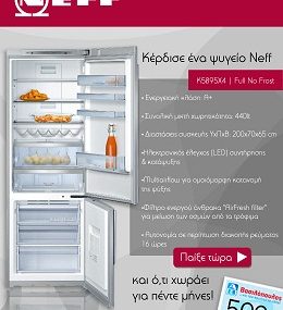 Το Live Cooking διοργανώνει διαγωνισμό και σας δίνει τη δυνατότητα να κερδίσετε ένα ψυγείο NEFF (μοντέλο K5895X4) καθώς και δωροεπιταγή/ές για τα καταστήματα «ΑΒ Βασιλόπουλος» αξίας 500 ευρώ, που εκτιμάται πως αντιστοιχούν σε προμήθειες 5 μηνών.