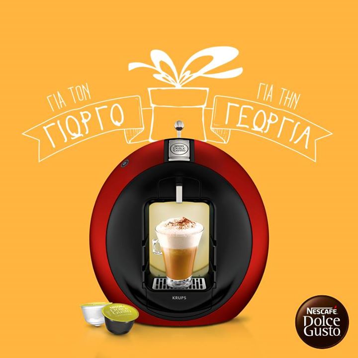 Η σελίδα Nescafé Dolce Gusto Greece διοργανώνει διαγωνισμό και σας δίνει τη δυνατότητα να κερδίσετε μία μηχανή Nescafé Dolce Gusto Circolo. Κάνε mention στα comments τον αγαπημένο σου Γιώργο ή Γεωργία που γιορτάζουν και μπες στην κλήρωση για να κερδίσεις και να τους πεις «Χρόνια Πολλά» με τον ωραιότερο τρόπο.