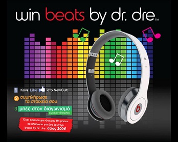 Η σελίδα του New Cult διοργανώνει διαγωνισμό και σας δίνει τη δυνατότητα να κερδίσετε ένα ζευγάρι ακουστικά Dr. Dre αξίας 200 ευρώ.