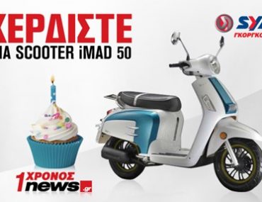 Το news.gr σβήνει το πρώτο του κεράκι και σας δίνει τη δυνατότητα να κερδίσετε ένα scooter iMAD 50, προσφορά της SYM ΓΚΟΡΓΚΟΛΗΣ Α.Ε, αξίας 1.495 ευρώ.