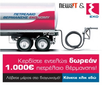 Το newsit.gr διοργανώνει διαγωνισμό και σας δίνει τη δυνατότητα να κερδίσετε 2 δωροεπιταγές για αγορά πετρελαίου θέρμανσης ΕΚΟ, αξίας 1000 ευρώ.