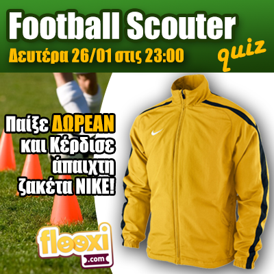 Παίξτε δωρεάν στο νέο εβδομαδιαίο quiz του flooxi με θέμα τα τελευταία ποδοσφαιρικά νέα, απαντήστε σωστά σε περισσότερες ερωτήσεις από τους αντιπάλους σας και κερδίστε μια κομψή και απίστευτα πρακτική dri-fit μπλούζα Nike!