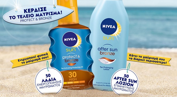 H Nivea διοργανώνει διαγωνισμό και δίνει τη δυνατότητα σε 50 τυχερούς να κερδίσουν από ένα Protect & Bronze προστατευτικό λάδι και ένα Protect & Bronze After Sun lotion!
