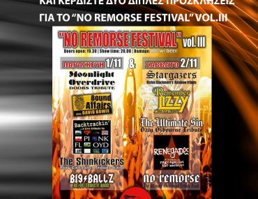 Το Ifeelradio.gr διοργανώνει διαγωνισμό και σας δίνει τη δυνατότητα να κερδίσετε 2 διπλές προσκλήσεις για το “NO REMORSE FESTIVAL” Vol.III στο ΚΥΤΤΑΡΟ LIVE!