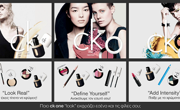 Το μακιγιάζ ck one από τον οίκο Calvin Klein, ήρθε για να χρωματίσει μοναδικά τη ζωή σου, αποκλειστικά στο notosgalleries στην Αθήνα! Διάλεξε το μακιγιάζ που ταιριάζει στο δικό σου στυλ, κάνε “mention” 2 φίλες σου(@ και facebook όνομα) και κερδίστε η καθεμία από ένα ολοκληρωμένο μακιγιάζ από την εξειδικευμένη make-up artist καθώς και 5 προϊόντα της επιλογής σας του ck one “look” που σας εκφράζει!