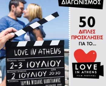 Το novacinema.gr διοργανώνει διαγωνισμό και σας δίνει τη δυνατότητα να κερδίσετε 50 διπλές προσκλήσεις στο φεστιβάλ ταινιών μικρού μήκους “Love in Athens”, την Τρίτη 2 Ιουλίου, στις 20:30, στο Ίδρυμα Μιχάλης Κακογιάννης (Πειραιώς 206, Ταύρος).