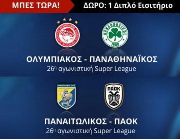 To Novasports.gr διοργανώνει διαγωνισμό και σας δίνει τη δυνατότητα να κερδίσετε ένα διπλό εισιτήριο για τον αγώνα Ολυμπιακός – Παναθηναϊκός και ένα για τον Παναιτωλικός – ΠΑΟΚ!