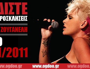 To ogdoo.gr διοργανώνει διαγωνισμό και σας δίνει τη δυνατότητα να κερδίσετε 5 διπλές προσκλήσεις για τη συναυλία της Ελεωνόρας Ζουγανέλη στο προαύλιο Badminton στις 15 Σεπτεμβρίου