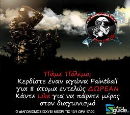 Η σελίδα Paintball-Counterstrike διοργανώνει διαγωνισμό και σας δίνει τη δυνατότητα να κερδίσετε ένα 3ωρο παιχνίδι paintball 8 ατόμων με 500 μπίλιες ο καθένας!