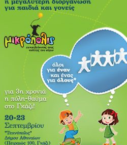 To pamebolta.gr διοργανώνει διαγωνισμό και σας δίνει τη δυνατότητα να κερδίσετε 5 διπλές προσκλήσεις για να επισκεφτείτε το μεγαλύτερο φεστιβάλ για παιδιά και γονείς τη 3η Μικρόπολις 2012 από 20 έως και 23 Σεπτεμβρίου στην “Τεχνόπολις”, του Δήμου Αθηναίων (Πειραιώς 100, Γκάζι).