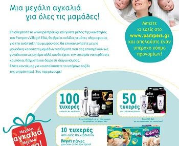 Το all4mama.gr διοργανώνει διαγωνισμό και σας τη δυνατότητα σε 5 τυχερούς να κερδίσουν από 4 πακέτα πάνες Pampers Baby Dry ή Pampers New Baby Sensitive, ανάλογα με την ηλικία του μωρού τους και 4 πακέτα μωρομάντιλα Pampers.