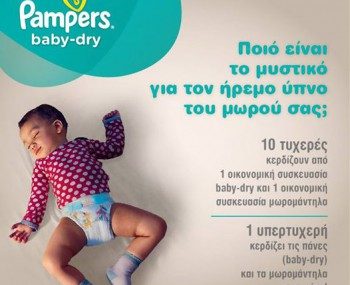 To superdad.gr διοργανώνει διαγωνισμό και δίνει τη δυνατότητα σε 5 τυχερούς να κερδίσουν από 4 συσκευασίες πάνες Pampers Baby-Dry και 5 συσκευασίες μωρομάντηλα Pampers Sensitive!