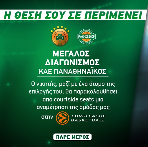 H σελίδα Panathinaikos BC διοργανώνει διαγωνισμό και σας δίνει τη δυνατότητα να δείτε τον αγώνα Παναθηναϊκός – Zalgiris Kaunas στην Euroleague από courtside θέσεις!
