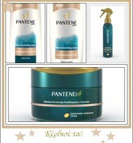 Η σελίδα Pantene Greece διοργανώνει διαγωνισμό και σας δίνει τη δυνατότητα να κερδίσετε 3 σετ με συσκευές μαλλιών Braun (1 πιστολάκι μαλλιών και 1 κεραμικό σίδερο ισιώματος Satin Hair 7) και 10 πακέτα με προϊόντα μαλλιών Pantene Pro-V (1 σαμπουάν, 1 conditioner και 1 μάσκα μαλλιών της σειράς Αναδόμηση και Προστασία).