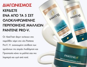 Το Beauty Diaries διοργανώνει διαγωνισμό και δίνει τη δυνατότητα σε 5 τυχερές να κερδίσουν από μια ολόκληρη σειρά Pantene Pro-V με σαμπουάν, κοντίσιονερ, μάσκα και σπρεϊ λάμψης.