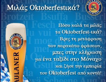 H Paulaner Greece διοργανώνει διαγωνισμό και σας δίνει τη δυνατότητα να κερδίσετε συλλεκτικά δώρα κάθε εβδομάδα και ένα ταξίδι στο Μόναχο και να ζήσετε την εμπειρία του Oktoberfest!