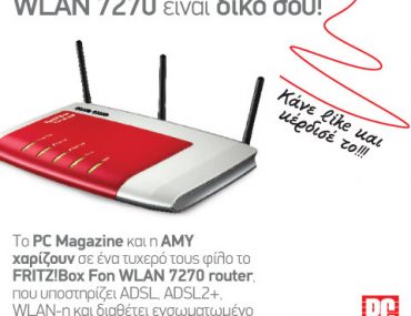 Το PS Magazine διοργανώνει διαγωνισμό και σας δίνει τη δυνατότητα να κερδίσετε ένα FRITZ!Box Fon WLAN 7270 router που υποστηρίζει ADSL, ADSL2+, WLAN-n και διαθέτει ενσωματωμένο τηλεφωνικό κέντρο για όλους τους τύπους τηλεφώνων.