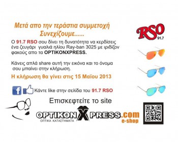 O 91.7 RSO κληρώνει ένα ζευγάρι γυαλιά RAY-BAN 3025 με φακούς OPTIKONXPRESS.