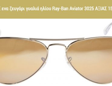 Το diethni.gr σε συνεργασία με την OPTOLUX προσφέρουν σε έναν τυχερό και μια τυχερή την ευκαιρία να κερδίσουν από ένα ζευγάρι γυαλιά Ray-Ban Aviator χρυσού χρώματος με ασημί καθρέφτη (μοντέλο 3025 το οποίο είναι unisex).