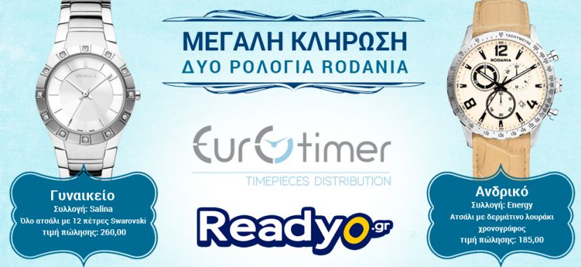 Το READYO.GR διοργανώνει διαγωνισμό και σας δίνει τη δυνατότητα να κερδίσετε ένα ανδρικό και ένα γυναικείο ρολόι RODANIA.