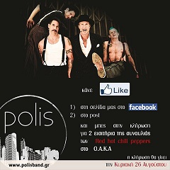 Η σελίδα Polis διοργανώνει διαγωνισμό και σας δίνει τη δυνατότητα να κερδίσετε 2 εισιτήρια για την συναυλία των Red Hot Chili Peppers.