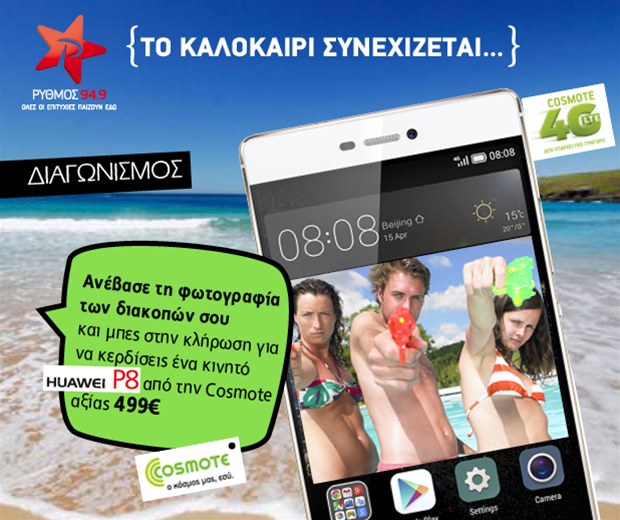 Ο rythmosfm.gr διοργανώνει διαγωνισμό και σας δίνει τη δυνατότητα να κερδίσετε ένα κινητό Huawei P8 από την Cosmote!