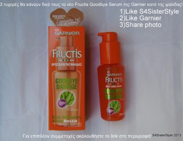 Το S4SisterStyle και η Garnier Greece χαρίζουν σε 3 τυχερές τον νέο ορό κατά της ψαλίδας Fructis Goodbye Damage της Garnier!