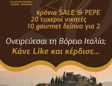 Η Sale & Pepe διοργανώνει διαγωνισμό και σας δίνει τη δυνατότητα να κερδίσετε δέκα δείπνα για δύο άτομα.
