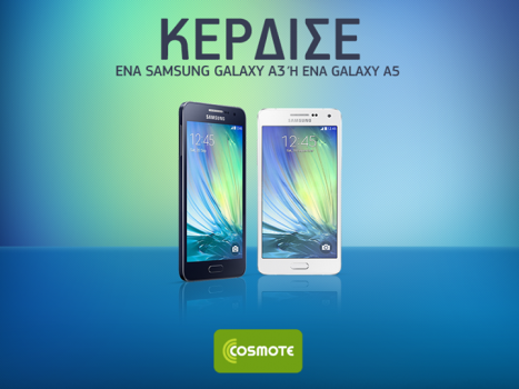 Θέλεις να κερδίσεις το νέο Samsung GALAXY A3 ή το νέο GALAXY A5; Πάρε μέρος στον διαγωνισμό της COSMOTE και διεκδίκησε μία από τις 2 συσκευές! Μόνο για συνδρομητές!