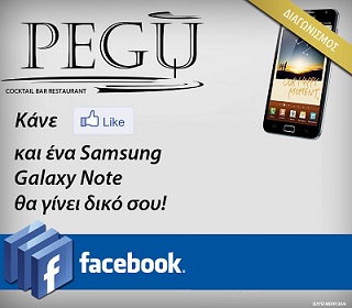 Η σελίδα του PEGU Bar Restaurant στο Facebook διοργανώνει διαγωνισμό και σας δίνει τη δυνατότητα να κερδίσετε ένα Samsung Galaxy Note.