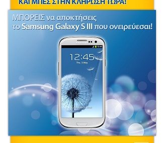 Το myphone.gr και το tixeroulis.eu διοργανώνει διαγωνισμό και σας δίνει τη δυνατότητα να κερδίσετε ένα Samsung Galaxy SIII.