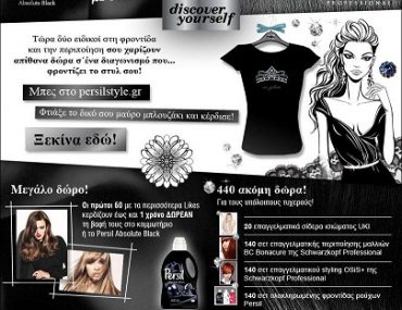 Η σελίδα Schwarzkopf Professional Greece διοργανώνει διαγωνισμό και σας δίνει τη δυνατότητα να κερδίσετε: υπηρεσίες βαφής σε συμβεβλημένα κομμωτήρια για 1 χρόνο ή 6 μήνες ή 3 μήνες, το Persil Absolute Black σας για 1 χρόνο ή 6 μήνες ή 3 μήνες και επιπλέον επαγγελματικά σίδερα ισιώματος μαλλιών μάρκας UKI, σετ επαγγελματικής περιποίησης μαλλιών BC Bonacure της Schwarzkopf Professional, σετ επαγγελματικού styling OSiS+ της Schwarzkopf Professional και σετ περιποίησης ρούχων Persil.